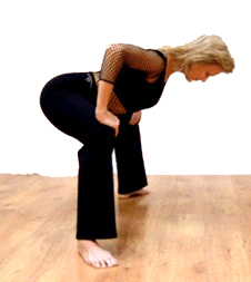 a wide stance with toes turned to 2 and 10 o’clock, ankles
