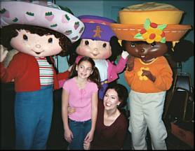 Hold your heads until the cue. Oy vey! Then, to add further insult to injury...with my shrunken head I looked across the stage and saw a foe, a stage hand...but it was tooo late! He had spotted me! He was a dear friend of my not-so-friendly ex-husband. Living this one down was apparently not going to be an option! The Lights went up and WOW!! The audience was really into it! They were cheering "B... E... S...T...MERVYN'S!" We were on...I hit my first cues..yeah!!! I chased after Strawberry Shortcake - yes, there she was... JITTERBUG... moving... heatwave... box-step... pas-de-beret... conga-line... swaying... move in line... cross step...follow Cinderella... spin, turn... run back...reach it up, step it down, sequence number two: Rast! Fosse! Run down stage, pose and hold, and whap! my head almost fell off into the audience! I looked around, and there she was...Strawberry Shortcake, front and center - she had shoved me out of the way! Success! Finito...another gig down.....a few bruises to remember it by, along with a monstrous headache, but "the check is in the mail!" It's a living, and I am so grateful that I got to dance!