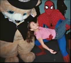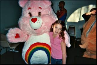 My agent, playing one of the Care Bears, had rehearsed relentlessly, as had I...we had to be our best! That jingle played over and over, grinding into the recesses of our minds: "MERVYN'S...DAH-DA-DA...TA DAH...MERVYN'S!" I was a bit worried about my partner...would she be there when we were supposed to jitterbug? Or would I again look like a big-headed lost stray cat, as she stood somewhere else as if she was supposed to be there? I looked at my agent and she had a very serious look on her face. With her own wee little head and big fat bear body, she asked me to watch her walk from the back. "How does my tail look?" Yes, that was great, but the tail was moving toooo fast! It needed to go right, left, right, left, because the tail was moving too fast, I told her.(She was choreographing her little bear tail..and I was helping her! We had officially lost it.)