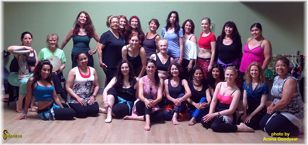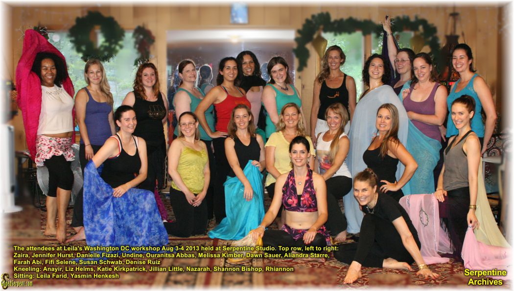 The attendees at Leila's Washington DC workshop Aug 3-4 2013 held at Serpentine Studio. Top row, left to right: Zaira, Jennifer Hurst, Danielle Fizazi, Undine, Ouranitsa Abbas, Melissa Kimber, Dawn Sauer, Aliandra Starre, Farah Abi, Fifi Selene, Susan Schwab, Denise Ruiz