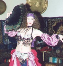 The Gilded Serpent presents Sirens In Sanity's 2nd Annual Halloween Belly Dance BashReport by Saiedeh and YasmineIt was a rainy, dreary night, a perfect setting for the 2nd Annual Sirens In Sanity Belly Dance Bash in Benicia on Saturday, October 28th. The evening was filled with belly dance routines in a variety of themes; some Halloween, some traditional, and some alternative. Here was the line-up: Sirens In Sanity troupe and students, Raks Sahibat, Najmes, Chenoa, Jasmine, Dejah, Yasmine, Lisa Young, Ayana, Sitara, and Saiedeh. Sirens In Sanity opened the show with a very haunting candle routine to "The Rite" by Lisa Gerrard, cloaked in black veils and holding great big eyeball candles. The routine had a very ritualistic feel with circle dancing and partner work. The ending was the unveiling of the three primary troupe members (Ayana, Saiedeh & Yasmine) and brought on the traditional double veil piece entitled "Mantra" by Hallucination Engine. These routines were very affective in setting the mood for the evening. Raks Sahibat followed up with their award winning competition routine made up of four troupe members (Jasmine, Medeea, Nefeesa, & Sitara). As usual, they performed beautifully; with immaculate zill work, sword, and drum finale. They were definitely an appreciated highlight of the evening. Najmes, portrayed "Mistress of the Darkness". Costumed in a feathered mask and black cape and dress, she entered hissing at the audience. Eventually, she shed her mask and cape and performed an erotic interpretive belly dance. Chenoa, a student dancer of Sirens In Sanity, performed to a mixed piece by Enigma and Omar Faruk Teklibek. She floated onto the stage area in a delicate white costume, carrying a basket of glitter. She gracefully performed veil, drum and a meaningful interpretation of a mothers love for her daughter. The dramatic climax was to reach in her basket and shower glitter. Chenoa, a new dancer, is showing great promise with every performance. Jasmine, a member of Raks Sahibat, did a beautiful veil routine to an Anna Vissi song in addition to a well-executed drum piece. Her costume was creatively matched in multi-colored beads and sequins. As always, Jasmine's performance was professionally entertaining. Dejah performed an exotic, electric and exciting "Survivor Island" tropical belly dance to the song "Imaginary Traveler". Her costume included a sarong tied skirt, with beads and shells. It was a perfect match for the island theme. The dance consisted of a high-energy veil, sword and zill work. The "famously comical" raffle drawing by Sirens In Sanity followed the intermission. It was a light moment in a very dark evening! The 2nd half of the show started with Yasmine, Sirens In Sanity co-director. She glowed in the black light from head to toe in a beautifully executed, unusual but traditional sword and veil routine. Her all-white costume was topped off with her sword, wrapped in white ribbons with streamers, which was captivating and soothing to watch. As an unusual twist, while still dancing with the sword in place on her head, she did several veil moves, which was very challenging and exciting. She was truly "A Vision In White". Lisa Young, a member of TroupeYas Salehm & The Celebration Dancers, had planned to perform a duet, but her partner had to cancel; so in the spirit of the evening, Lisa performed the routine as a solo. It was a fun, festive, and imaginative routine, which included a candle-lit jack-o-lantern balanced on her head. It was a great combination of both ethnic and cabaret styles, which ended in a luminous double veil under the black light. She is such a wonderful friend in the belly dance community and deserves the highest of respect.