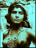that clung gracefully to her slim hips, with chains of coin hanging