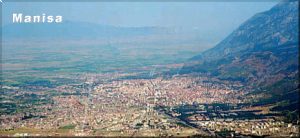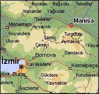 Manisa is a small stop on the way to Izmir. A disembarkation is handled thusly: As the bus cruises slowly down the boulevard, you stand with the steward at the rear exit of the bus. The door opens and the bus pauses. At that point the steward says "now" and you jump off.
