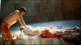 Two months of grit (and tan) were briskly scrubbed off, accompanied by her exclamations. As I turned over, I saw a large amount of debris (from me!) on the floor. Oya was quickly rinsing off the floor to begin the soap scrubbing, done with a soft plastic puff ball, which included a half hour back massage. This was done too delicately for my taste, but it was adequate.