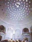 Beams of light grace the huge, circular, heated, marble platform in the middle of the room. Although I saw no steam, per se, I’d guess the humidity to be about eighty to ninety percent! Languidly laying on this marble platform were women. (Conservatively, I’d say the platform could hold about twenty.) Some were talking quietly to one another, some asleep, some gazing at the patterns of the dome. All were in various stages of bath, all of which takes place on the platform itself. A woman greeted me, made room on the platform for me to lie down, head towards center, feet to edge. There you lie, either falling asleep or gazing at the workings of “the bath”, In this position, you begin to feel warm, and perspire a little. The heat and moisture serves to begin to open your pores, loosen your muscles, and make you feel relaxed. Then a woman instructed me, to move to her location.