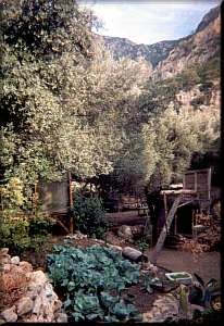 a well-tended vegetable garden. The tree houses themselves